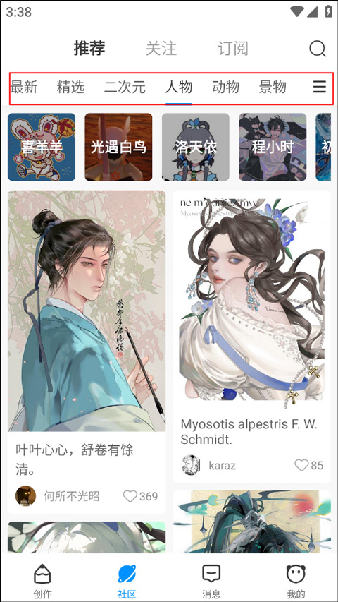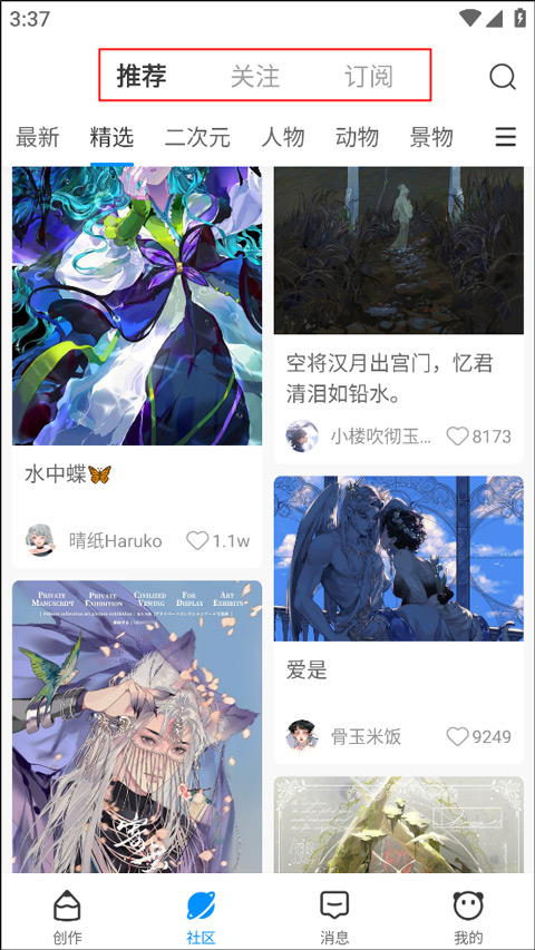 2、其中主要划分了“关注”和“推荐”以及“订阅”等三大功能;