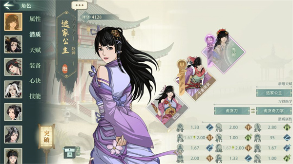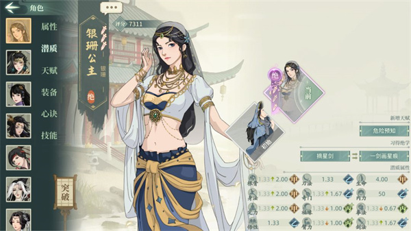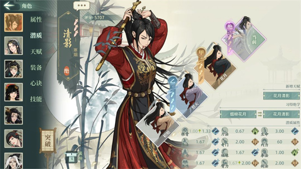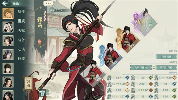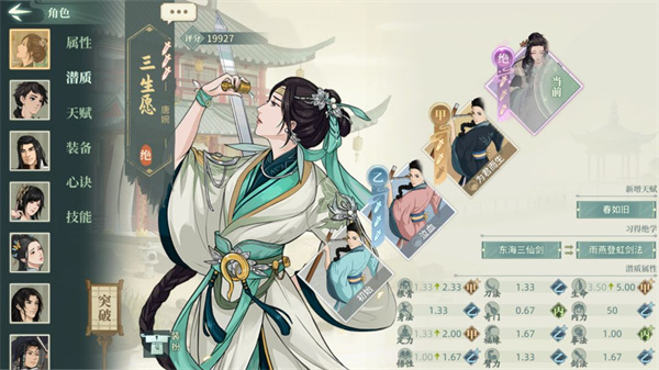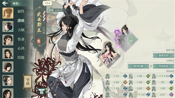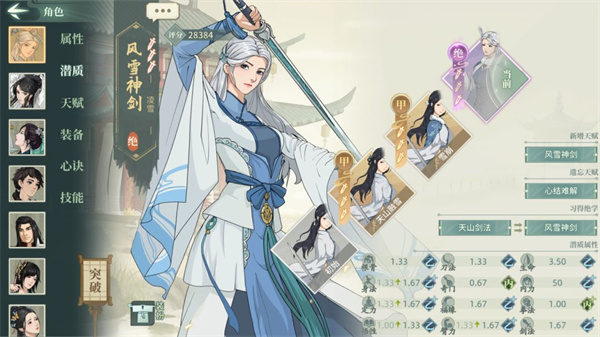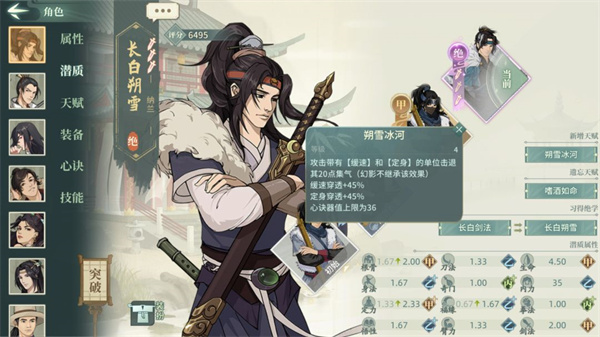 说明:本文中所有例如00,33这类数字代表潜质武学的突破情况,第一个数字代表潜质突破,第二个数字代表武学突破,00代表解锁,33代表潜质三突武学三突