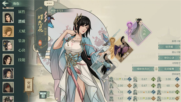 标准直伤输出侠客,轻灵蝶40技能威力加成,独有天赋化蝶让柳妹不吃除眩晕迷茫逃跑外的任何控制,常规用法是让对面给柳妹上软控或剑魂门派触发门派天赋给柳妹上增益叠加化蝶,让柳妹完成多次行动的目的,同时武学满突后蝶影存在期间击杀敌方(幻影也算)可刷新技能冷却,所以柳妹在对付软控多和召唤物多的场合非常好用,非常契合剑魂门派,可作为剑魂门派的主C,同时在帮会割草中也能大展身手,一个顶三。