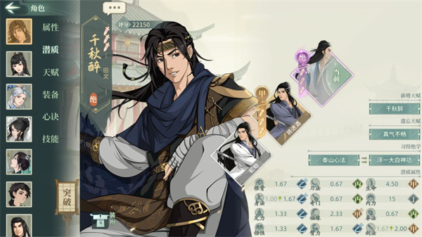 没什么好说的,自带武学很拉胯,但是本身面板很优秀,自带不动明王,但是会喝假酒,也是个优秀的载体,长荒藏渊太极剑都可。