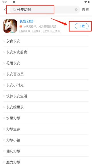 3、可以直接点击上图框出的位置下载,但如果想要了解更多的游戏资讯的话可以点击《长安幻想》,进入游戏详情页面