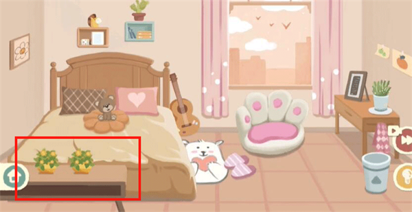 8、最后我们摆正床头上的收纳格,放好小马摆件,右边放小盆栽即可过关。