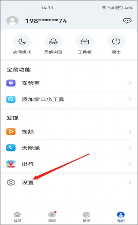 1、在华为浏览器我的页面点击设置;