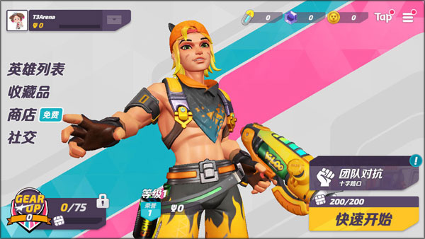 1、首先在本站下载火力苏打国服,然后安装启动,新玩家需先注册账号,注册好后进入游戏如图,点击右下角快速开始;