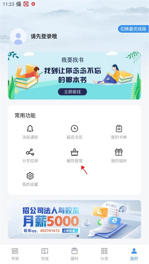 4、之后来到我的界面,找到缓存管理进入。