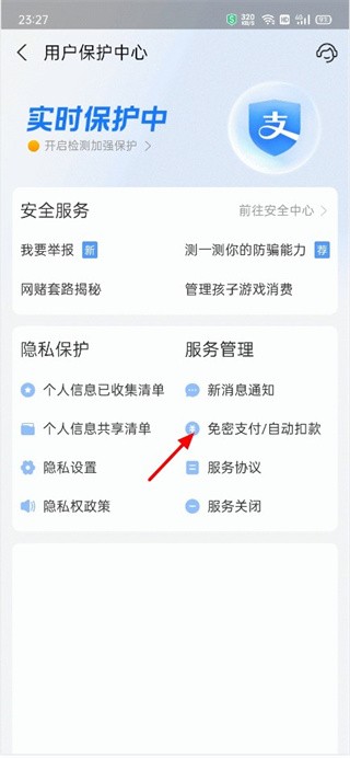 2、知道免密支付/自动扣款选项点击。