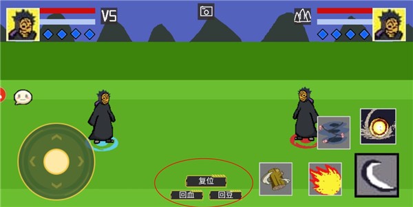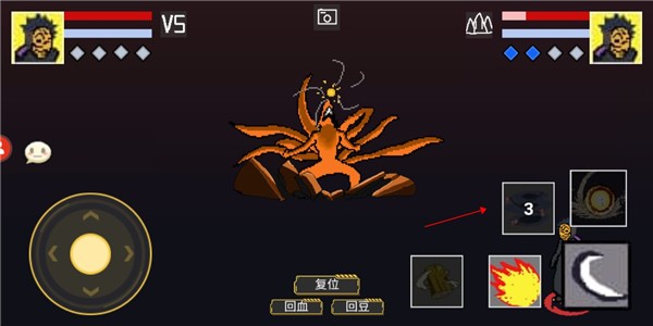 2、接着在释放大招的过程,点击其中的【复位】上方的隐藏按钮,可能会有点卡;