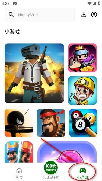 如果想玩h5游戏/在线游戏,就可以点击右下角的“小游戏”,里面的的小游戏就有很多了。