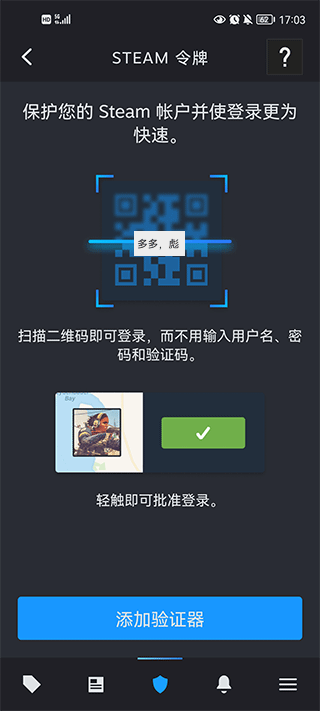 5、steam令牌,在您的手机开启steam令牌手机实名认证器,让您的steam账号取得最好的安全防护。