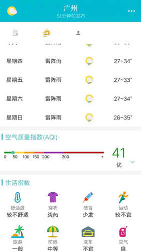 9、生活指数:出示高达27种气候生活指数,轻轻松松具体指导生活。