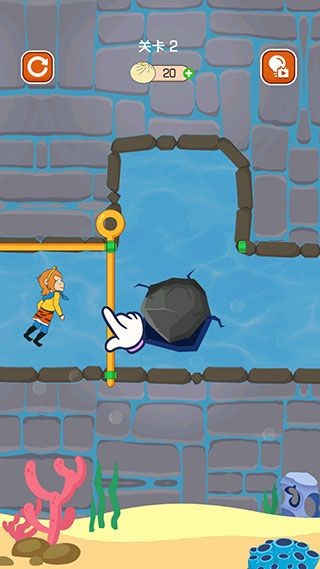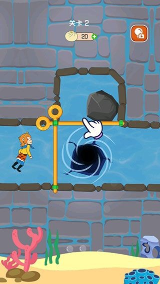 3、第二关需要先拉开横向的拉杆,让石块落下来堵住洞口。