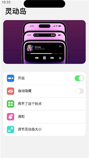 3、灵动岛开启后,我们可以自动隐藏、管理通知、调节灵动岛大小等