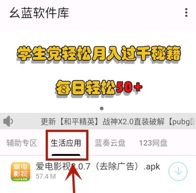 1.下载安装并打开幺蓝软件库app,根据你的需求选择不同的分类,比如小编选择了【生活应用】