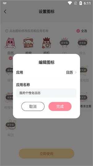 4、或点击应用更换下应用名称,点击【立即使用】。