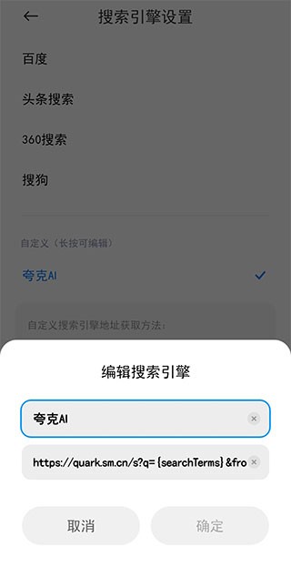 2、支持自定义搜索引擎,比如可以自定义夸克的搜索引擎,夸克AI还是不错的;