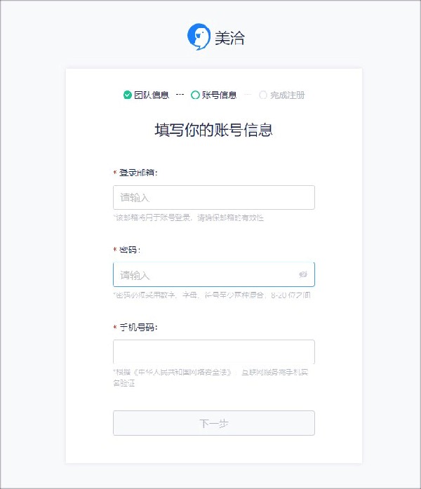 然后就按照流程来填写我们登录用的邮箱、密码以及手机号等信息。