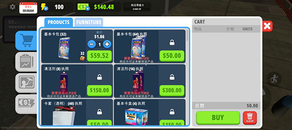 4、真实的经营体验:游戏为玩家带来了真实的商店经营体验。玩家扮演卡牌商店的老板,需要每日进货全新卡包,并将其上架到货柜以供顾客购买、互换等。通过不断的经营,玩家可以扩大店铺规模,自由装饰店铺,并解锁新的卡牌系列和设施,从而吸引更多顾客,逐渐打造成为镇上最著名的卡牌店。