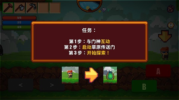 6、进入游戏后,左下方键控制角色移动,右下方“A”是攻击键“B”是跳跃;