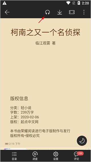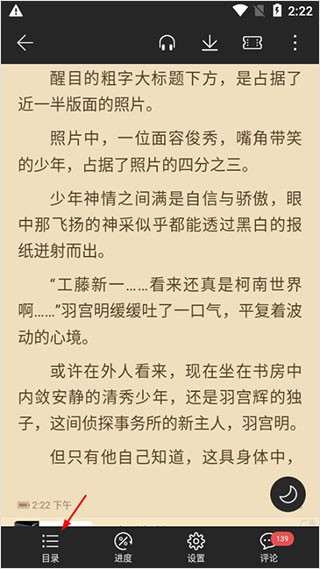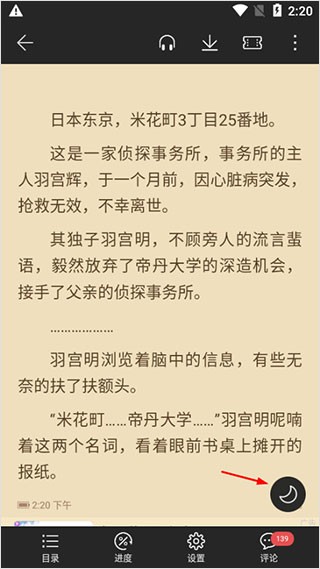 阅读页分日间模式与夜间两种模式,阅读界面亮度自由调节,享受贴心的看书体验;