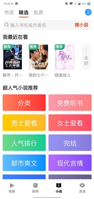 3.小说菜单分类非常多,超人气小说推荐。