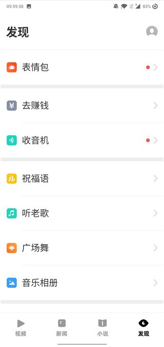 4.发现菜单含有表情包,看小说功能。