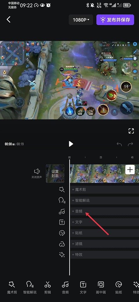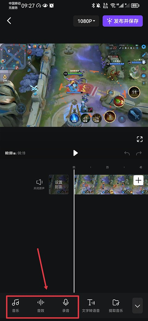 5、完成音频剪辑后,点击右上角“发布”,与视频片段合成完整作品。