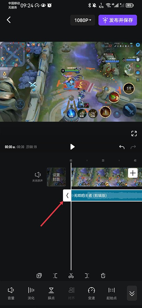 5、完成剪切后点击右上角“发布”,保存剪辑结果。