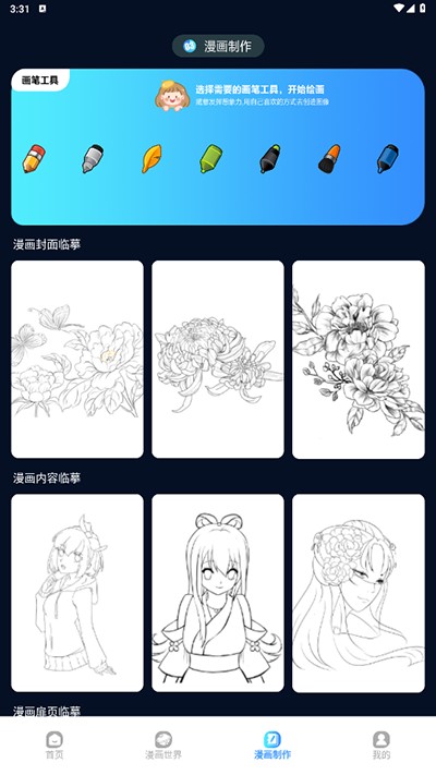 4、漫画制作版块内用户可以根据自己的意愿去创作;