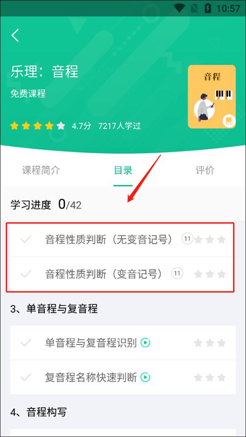 2、进入之后会有一个课程简介、目录以及评论,这里可以选择自己需要的点击进去。