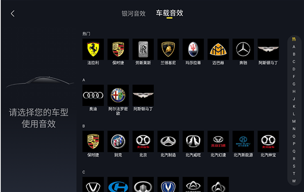6、像车载音效更是支持用户根据自己的车型来选择使用