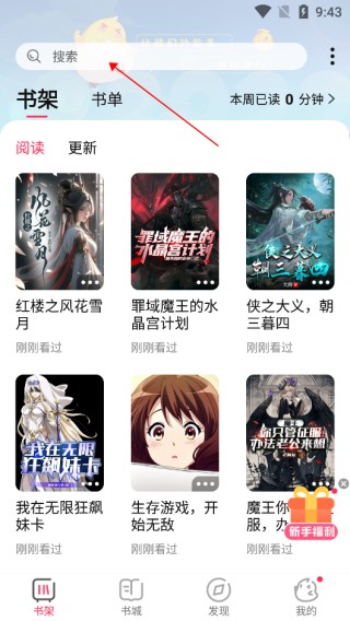 2、可通过书名/作者/简介/书架进行搜索,也会有热门佳作推荐;