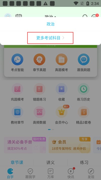 2、点击更多考试科目