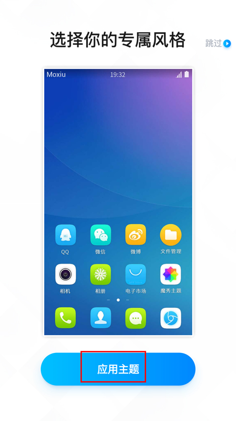 1、在本站下载安装软件之后,滑动选择主题之后,点击中间的应用主题;