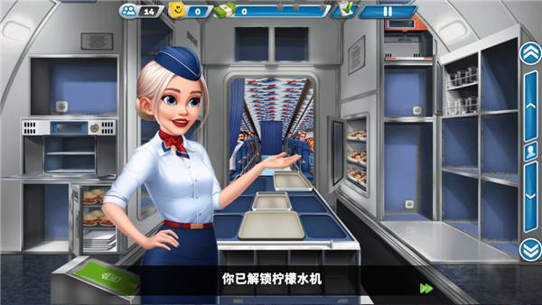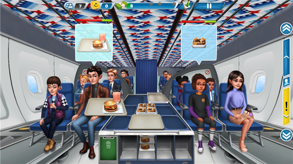 4、独特的游戏背景:游戏以航空餐经营为主题,玩家需要在飞机上扮演空姐或厨师的角色,及时给顾客配餐。这种独特的游戏背景让玩家在享受烹饪乐趣的同时,还能体验到空姐或厨师的日常工作和生活。