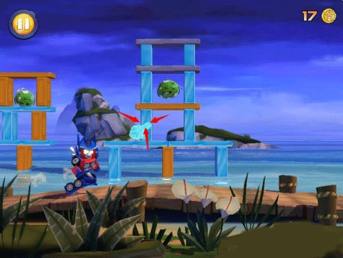 2、攻击炸药箱,不但建筑物会被炸飞,还会波及到旁边的建筑物和捣蛋猪。而且破坏建筑物可以获得更多的金币,可谓一举两得。