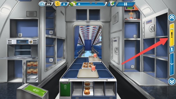 5、点击右侧箭头可前往机舱或是回到飞机厨房,在机舱中将顾客所需食物给到顾客;