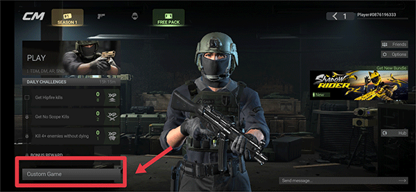3、好友添加成功后返回游戏主界面,并点击左下角custom game自定义游戏