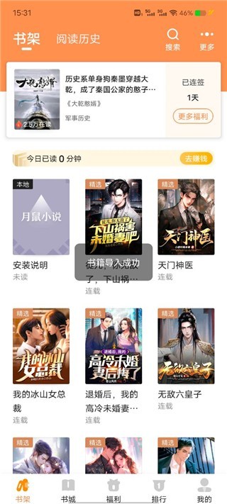 4、最后在主界面即可看到本地书籍导入成功可随意阅读。