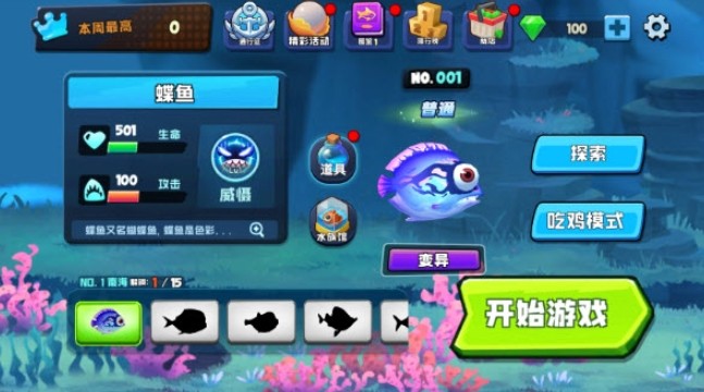 1、游戏中有来自全球各地的不同种类的鱼儿供玩家选择,每种鱼都有自己独特的技能。