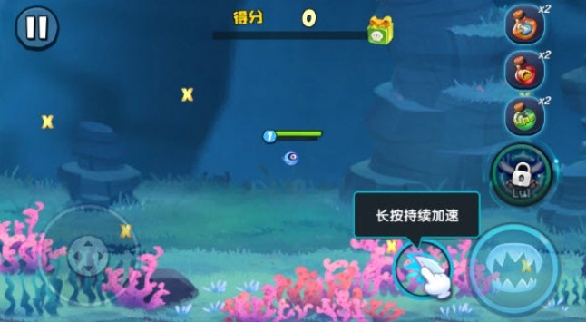 2、通过拖拽透明的轮盘,玩家就可以轻松地控制鱼类在海洋世界中移动,操作简单易懂。