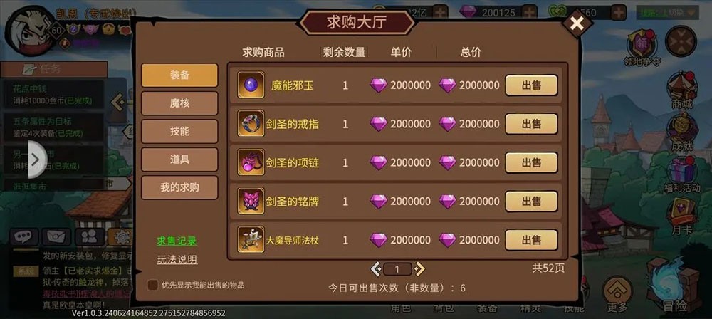 2.新增装备回收系统。神器粉装,史诗金装可以回收成钻石,避免领主们前期无钻石体验交易功能。