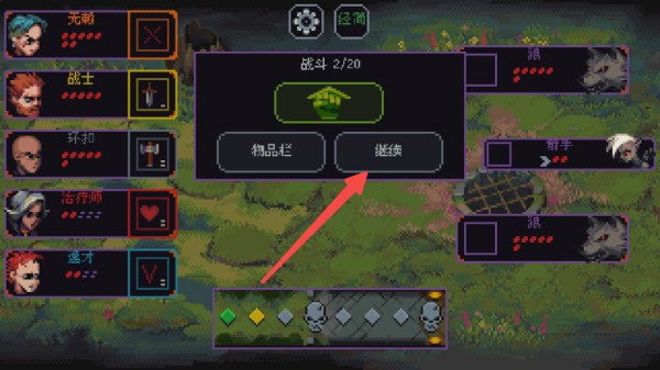 7、击败一个小回合的敌人后点击继续;