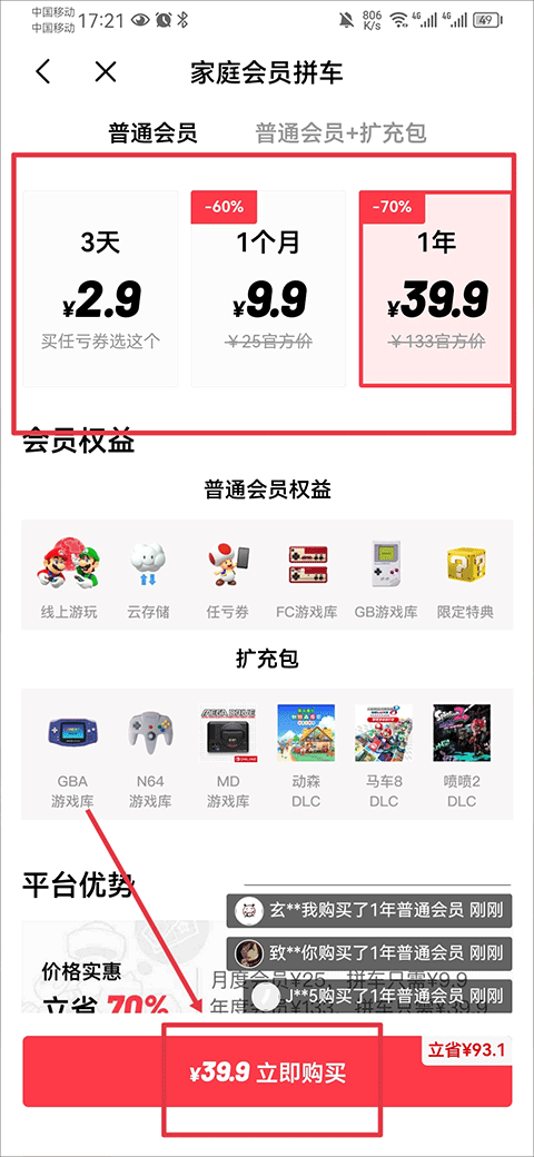 2、进入后选择你要购买哪种套餐,然后点击立即购买即可