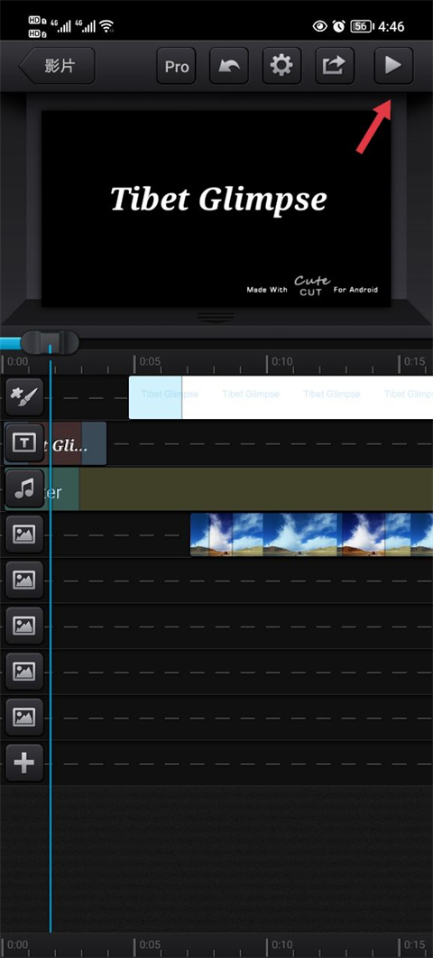 从相册中添加照片或者素材,如果添加进来带透明背景的png图片的话,这里显示背景也是透明的,所以可以有一堆用法,比如给人脸添加红彤彤的腮红阿,贴个胡子,贴个逗逼表情等等等等…而且相片轨道数量是不限制的(反正我添加了10层还可以继续)