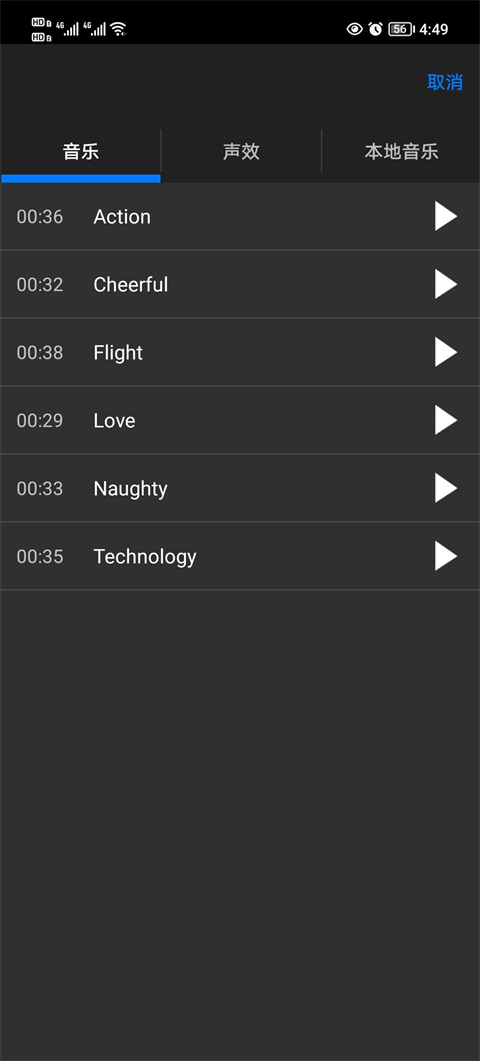 添加音乐,内置的内容比较少,要自己做视屏还是需要从itunes添加点音乐的。