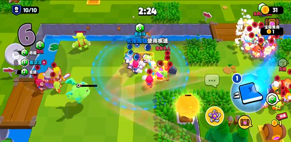 爆裂小队测试服是一款快节奏的多人在线竞技手游,主打四分钟一局的大乱斗和五人团队对抗。游戏中,玩家需要通过收集地图上的宝石和对手争夺第一,在收集的过程中,通过打怪、开宝箱和砍树等方式获取金币,抽取新的角色,而且玩家还能利用合成解锁角色的高阶形态和强力技能,同时玩家还可以通过组合有着专属效果的角色,触发小队技能连锁机制。快来爆裂小队测试服来一场有趣的乱斗对决吧!