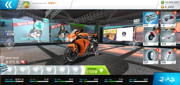 3、升级摩托车功能:动力。操控和刹车;