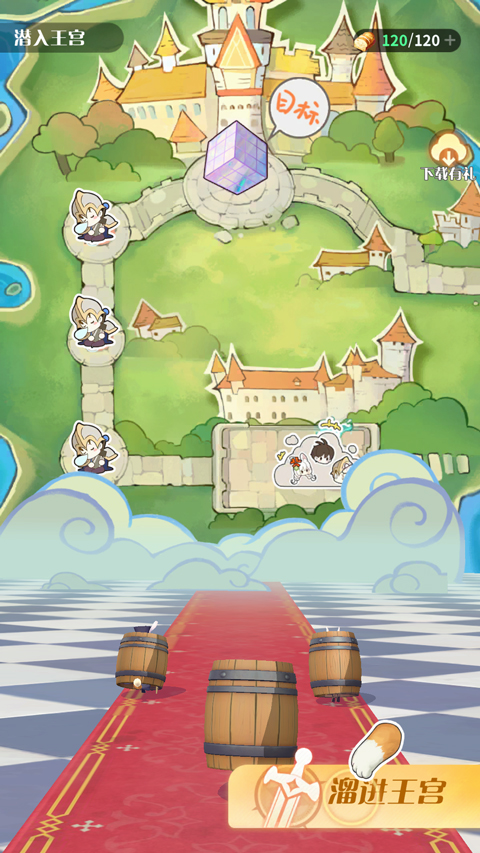 3、进入游戏如图,点击右下角遛进王宫;