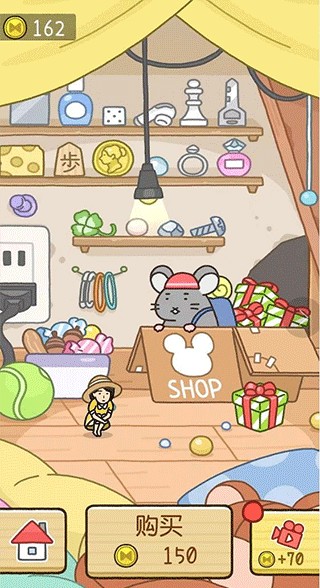 2、商店:可爱的小老鼠商店售卖各种实用的道具,金币或者观看视频即可观看