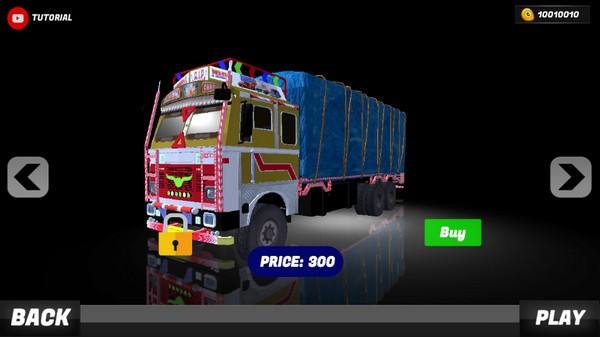3、然后就可以选择卡车了,往右边划可以找到这辆酷似擎天柱的卡车,不亏是印度老表这都做得出来,点PLAY开始